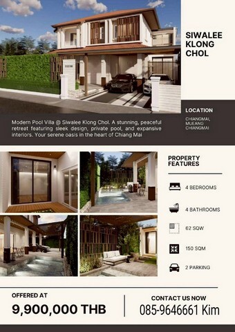พูลวิลล่าสุดหรู เพียง 9.9 ล้าน #สีวลี #คลองชล ทำเลพรีเมียม #แม่เหียะ ใกล้เมือง #ใกล้สนามบิน พร้อมอยู่ บ้านในโครงการคุณภาพ บรรยากาศสงบ เป็นส่วนตัว แต่เดินทางเข้าเมืองสะดวก