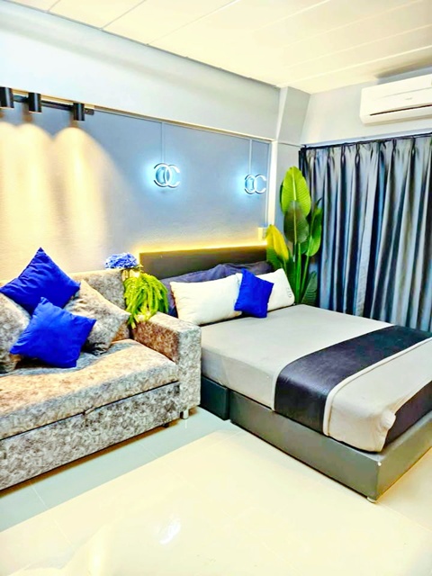 ภายในจัดฟังก์ชันครบ มีโซฟาเบดปรับนอนได้ เตียงขนาด 5 ฟุต โต๊ะเครื่องแป้งพร้อมไฟ LED และที่ชาร์จไร้สาย