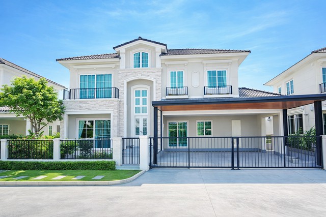 Rent reduced by 50% from 160,000 to 79,999B-M. Two-story detached house 4bed 4bath near Fashion Island 2.5km. 50sq.wa. 200sq.m. Luxurious home fully functional located in Nawamin area convenient transportation connecting multiple routes close to The Mall Bangkapi 3 km. And it has complete facilities, ideal for living, and is close to the Ramintra Expressway.