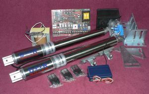 มอเตอร์บานสวิงคู่ เป็นมอเตอร์แบบเกลียวหมุน ใช้ไฟ 12- 18 Vdc. ไม่เป็นอันตรายต่อผู้ใช้ กำลังไฟต่อตัวที่ 150 Watt กินกระแสไฟที่ 2.1 Amp. เวลาในการเปิด-ปิด 2.9 ซม./วินาที
