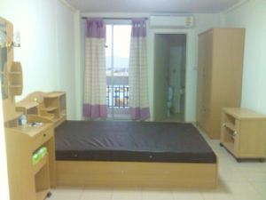 แอร์ + เตียงพร้อมฟูก + ตู้ + โต๊ะแป้ง + โต๊ะTV