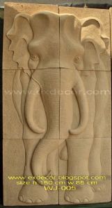 ขายหินทราย งานหล่อหินทราย ประดับผนัง รูปหน้าช้าง ขนาดความกว้าง 80 ซม. สูง 150 ซม.
