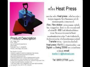 ราย ละเอียด: เครื่อง Heat press ( เครื่องรีดความร้อน ) พิมพ์รูปลงวัสดุทุกชนิด ใช้งานได้หลากหลาย อาทิ เสื้อ ปลอกหมอนทุกชนิด, ตัวอักษรกำมะหยี่,