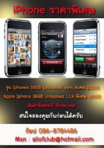 iphone 16GB unlocked orm 21500 บ. และ 16 GB unlocked 1.1.4 ราคา 18500 บ.