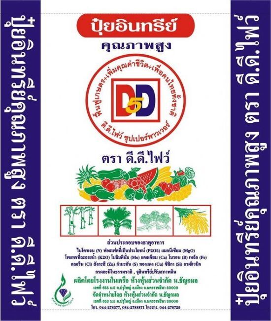 ปุ๋ยอินทรีย์คุณภาพสูงผสมเคมีธรรมชาติ ตรา ดี.ดี.ไฟว์