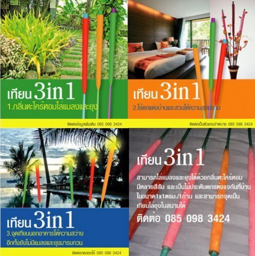1x1ตรม./1ก้าน และสามารถจุดเป็นเทียนไล่ยุงในสนามได้ เหมาะกับงานจัดเลี้ยง สังสรรค์ หรือร้านอาหารที่ต้องกา