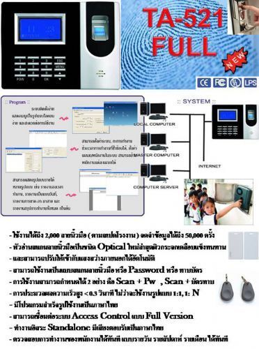 สแกนลายนิ้วมือ รองรับการเชื่อมต่อแบบ RS232/485 และ TCP/IP INTERNET