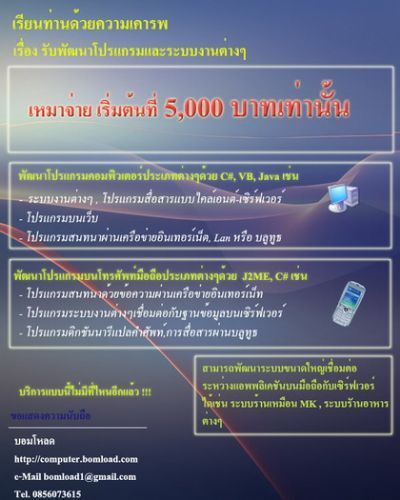 รับเขียนโปรแกรมคอมพิวเตอร์ C#.Net, Java, VB.Net, PHP