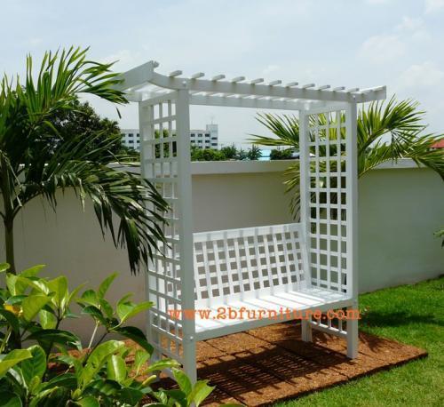 ซุ้มไม้ระแนง ซุ้มที่นั่ง สีขาว จากไม้เนื้อแข็ง (ไม้เต็ง) ราคาประหยัด ราคาโรงงานเราเอง