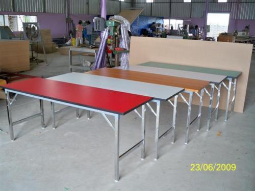 ขายโต๊ะพับอเนกประสงค์ผิวหน้าเป็นโฟเมก้ามีสีขาวและสีต่าง ๆ ขาชุปโครเมียม พับได้ ขามีปุ่มปรับระดับได้