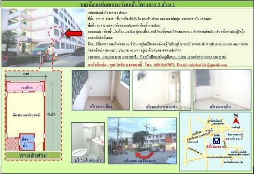 ราคาขาย : 290,000 บาท (ราคาสุทธิ) ปัจจุบันมีคนเช่าอยู่เดือนละ 2,300 (รวมค่าส่วนกลาง 300 บาท)