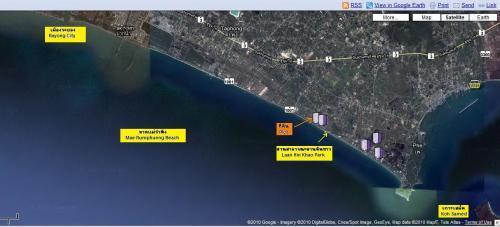ที่ดินตั้งอยู่ในทำเลที่น่าอยู่ที่สุดและเจริญที่สุดของหาดแม่รำพึง ซึ่งมีความยาวตามแนวสวนสนที่ร่มรื่นเกือบ 10 ก.ม. ตามขอบถนนเลียบหาดตลอดแนวทำเป็นเส้นทางวิ่งออกกำลังกายและปั่นจักรยาน อยู่ใกล้สวนสาธารณะลานหินขาวเป็นที่พักผ่อนหย่อนใจที่สวย สงบ และสะอาด และเป็นที่ตั้งป้อมยามตำรวจ อยู่ไม่ไกลจากตัวเมืองระยอง และตลาดผลไม้ มีตลาดอาหารทะเสสดที่จำหน่ายโดยชาวประมงท้องถิ่น อยู่ใกล้อุทยานแห่งชาติดเขาแหลมหญ้า ที่ดินอยู่ติดถนนลงชายหาด (เข้า-ออกได้หลายทาง) มีเส้นทางลัดไปถนนสุขุมวิท เส้นทางเลียบทะเลไปบ้านเพ (ท่าเรือไปเกาะเสม็ด) ไปแหลมแม่พิมพ์ และสถานที่ท่องเที่ยวอื่น ๆ ตามแนวชายฝั่งตะวันออก มีรถเมล์สองแถววิ่งไป-กลับตัวเมืองตลอดวัน ร้านค้าและร้านอาหารมากมาย เป็นที่อยู่อาศัยร่วมกันอย่างสงบสุขระหว่างคนไทยและชาวต่างชาติ