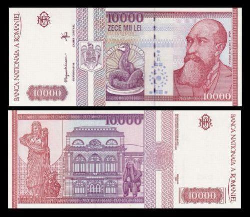 ขายธนบัตรประเทศโรมาเนียขนาด 10000 Lei ของสะสม มีอยู่ 10 ใบ ของเก่าหายาก เลิกใช้แล้วด้วย ใตรสนใจเชิญค่ะ