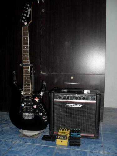 กีต้าร์ไฟฟ้า Ibanez พร้อมแอมป์และเอฟเฟกซ์ และเครื่องตั้งสาย