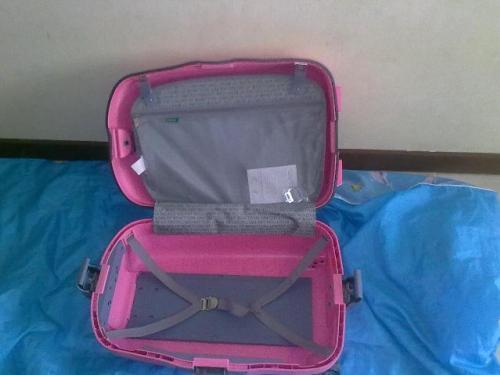 กระเป๋าเดินทางสีชมพู มีกุญแจล๊อคอย่างแน่นหนา