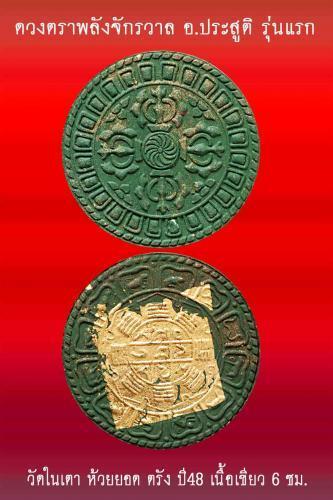 ขายดวงตราพลังจักรวาล อ.สูติวัดในเร่นแรก เนื้อเขียวหลังปิดทอง ขนาด 6 ซม.ราคา 3500.-