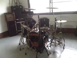 กลองชุด แต่ผมไม่ทราบยี่ห้อนะครับ ผมเปลี่ยนหนังกลองไปแล้วครับ ตรงที่เหยียบไฮแฮท pearl