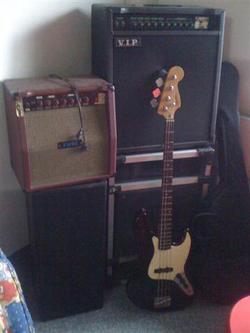 เบส squier jazz พร้อมกระเป๋าใส่เบส พร้อมแอมป์ vip ดอกสิบสองนิ้ว พร้อมเอฟเฟค zoom 506II