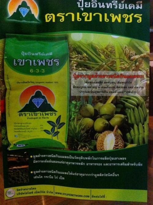 เนื่องจากว่าทางบริษัทได้โครงการสัมปทานขุดมูลค้างคาวจากถ้ำเขาเพชร จ.เพชรบุรี ดังนั้นจึงมั่นใจได้ว่า ของแท้ 100% ปุ๋ยมูลค้างคาว 1 กระสอบ 25 กิโลครับ ใช้ได้ 1 ไร่ เพราะไม่มีการผสมของปลอมปนครับ เจ้าของบริษัทคือ คุณ ก้อย เหตระกูลครับ ลูกสะไภ้ของ คุณประชา เหตระกูล เจ้าของเดลินิวครับ เค้ามีปรัชญาในการช่วยเกษตรกรไทยมากครับ เปรี่ยบเทียบกับ ปุ๋ยมูลค้างคาวของที่อื่น ที่กระสอบละ 50 กิโลที่ผสมอย่างอื่นเยอะมากครับ และใช้ได้ 1 ไร่เช่นเดียวกัน แตราคา 850 บาทขึ้นไปครับ ถือว่าลงทุนถูกมากครับ แต่ถ้าเป็นตัวแทนจำหน่ายของเรา จะซื้อได้ในราคา 450 บาทครับ และยังมีปุ๋ยสูตรน้ำที่ใช้โดยไม่ผสมปุ๋ยเคมีตัวอื่นและให้ผลผลิตที่ดีกว่าปุ๋ยเคมีเยอะเลยครับ ทำให้ดินไม่เค็มและไม่แข๋ง เร่งราก เร่งปล ขั้วเหนียว หรือสนใจเป็นตัวแทนจำหน่าย ลงทุนน้อย ราคาไม่แพง ติดต่อที่คุณวัตร โทร 088-8825671 Email [email protected]