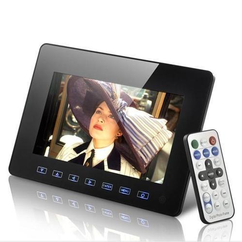 จอภาพขนาดใหญ่ 7 นิ้ว โชร์รูปดิจิตอลสุดโปรดของคุณบนโต๊ะที่ออฟฟิตหรือที่บ้าน เป็นรุ่นพิเศษที่สามารถเล่นเพลง MP3, ดูหนัง MP4 มาพร้อม Remote Control ให้คุณสามารถควบคุมเครื่องระยะไกลได้อีกด้วย Magical Moments Digitally Displayed เปิดเครื่องด้วย Remote Control หรือเปิดจากสวิทแบบสัมผัสที่หน้าเครื่อง มีช่องเสียบ SD Card, ช่องเสียบ USB และช่อง AV Out นอกจากแสดงภาพดิจิตอลแล้วยังสามารถเล่น MP3, MP4 หรือให้แสดงภาพดิจิตอลพร้อมเปิดเพลงไปพร้อมๆ กันได้อีกด้วย In your house - decorating it beautifully เหมาะมากสำหรับโชร์รูปเพื่อน รูปครอบครัว รูปหวานใจ หรือรูปอะไรก็ได้ สำหรับวางตั้งโต๊ะในออฟฟิตหรือในบ้าน มีฟังชั่นนาฬิกาสามารถตั้งเวลาปลุก แสดงวันที่และเวลา การแสดงรูปสามารถตั้งให้แสดงภาพแบบสไลต์หรือแสดงภาพปกติก็ได้ Chill, Sit Back and Enjoy this Photo Frame สามารถเล่นเพลงไฟล์ MP3 ดูหนังไฟล์ AVI ดูภาพไฟล์ JPEG, support SD Card สูงสุดได้ 8GB support Flash Drive ได้สูงสุด 8GB ให้คุณสามารถดูรูปได้เป็นพันรูปภาพเลย