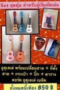 อูคูเลเล่ครบเซต+ที่ตั้งสาย+กระเป๋า+ปิ๊ก+ตาราคอร์ด 850 บาท
