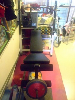 ขายม้านั่งนอนยกน้ำหนัก ยี่ห้อ Marathon พร้อมบาร์และเหล็กน้ำหนัก