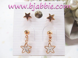 ต่างหูแฟชั่นเกาหลี set 2 คู่ ดาวสี pink gold , ดาวลายฉลุประดับคริสตัลใส สวยน่ารักมากค่ะ