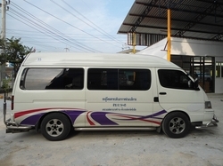 ขายรถตู้โตโยต้าสีขาวลายม่วง-ชมพู ขายรถพร้อมวิน