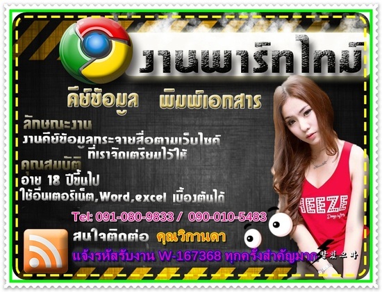 งานพิเศษปี 2558 รายได้เสริม เสาร์ อาทิตย์ งานเสริมทำที่บ้านได้