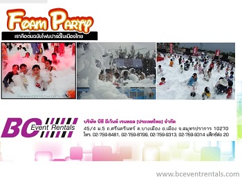 บีซี อีเวนท์ เรนทอล เราคือผู้จัดงานปาร์ตี้โฟมใหญ่ที่สุดในประเทศไทย ด้วยเครื่องฉีดโฟม ที่มีบริการมากกว่า 100 เครื่อง และเจ้าหน้าที่คอยควบคุมดูแลระบบตลอดงาน พร้อมด้วยให้เช่าบล็อกกั้น สำหรับเล่นโฟมปาร์ตี้ ทุกขนาดตามต้องการ ซึ่งน้ำยาโฟมของเราได้รับรองมาตรฐานว่าไม่มีอันตรายต่อร่างกายคุณจึงมั่นใจได้เลยว่าโฟมนี้ไม่มีผลข้างเคียงต่อร่างกายการันตีความสำเร็จจากทุกที่ยืนยันเป็นเสียงเดียวกัีนว่า โฟมปาร์ตี้ของ BC EVENT จากหน่วยงานต่างๆ