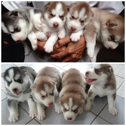 ขายลูกไซบีเรียนฮัสกี้ ตาสีฟ้าทุกตัว ตัวผู้1 ตัวเมีย3 เกิดเมื่อวันที่ 24 มิถุนายน 2557 ราคาตัวละ 7500 บาท
