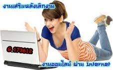 หารายได้เสริม หางานพิเศษ งานนอกเวลา งานรายได้เสริม13 พฤศจิกายน 2014No comments หารายได้เสริม หางานพิเศษ งานนอกเวลา สำหรับคุณๆที่ต้องมีรายได้เพิ่มมากกว่าเดิม ทำงานได้ทุกวัน ช่วงเย็น หรือช่วงไหนก็ได้ที่คุณว่าง มีรายได้จ่ายเป็นรายวัน สนใจหารายได้เสริม หางานพิเศษ งานนอกเวลา สามารถฝากประวัติไว้ หรือโทรติดต่อได้ที่ค่ะ หารายได้เสริม หางานพิเศษ งานนอกเวลา ลักษณะงาน เป็นการคีย์ข้อมูลประชาสัมพันธ์ทั่วไป คีย์ข้อมูล,ส่ง E- Mail ให้กับลูกค้า