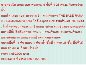 1.ขายคอนโด the base พระรามเก้า-รามคำเเหง 1 ห้องนอน 1 ห้องน้ำ ขนาด 26 ตรม ราคา 1.95 ล้านบาท