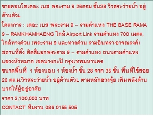 7.ขายคอนโด the base พระรามเก้า-รามคำเเหง 1 ห้องนอน 1 ห้องนำ้ ขนาด 26 ตรม ชั้น 28 ราคา 2.1 ล้านบาท