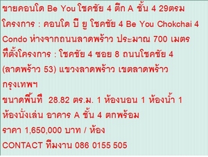 ขายคอนโด Be You โชคชัย 4 ตึก A ชั้น 4 29ตรม / ขายคอนโด Be You โชคชัย 4 ตึก A ชั้น 4 29ตรม
