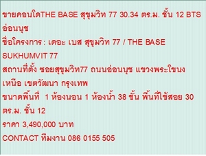 ขาย คอนโด เดอะ เบส สุขุมวิท 77 THE BASE SUKHUMVIT 77**ไม่รับนายหน้าค่ะ