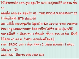 ให้เช่าคอนโด เดอะรูม สุขุมวิท 62 BTSปุณณวิถี 45ตรม ชั้น15