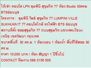 ให้เช่า คอนโด LPN ลุมพินี สุขุมวิท 77 ห้อง Studio 30ตรม BTSอ่อนนุช / ให้เช่า คอนโด LPN ลุมพินี สุขุมวิท 77 ห้อง Studio