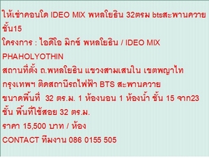 ให้เช่าคอนโด IDEO MIX พหลโยธิน 32ตรม btsสะพานควาย ชั้น15