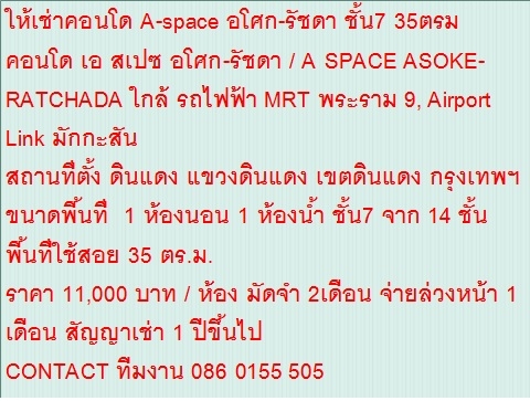 ให้เช่า A-space รัชดา-อโศก ไม่รับนายหน้าค่ะ