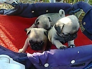 ปั๊กผู้2-เมีย2อายุ35วันถ่ายพยาธิแล้วสวยน่ารักรับประกันคุณภาพสวยแน่นนอนขายพร้อมใบเพ็ดตัวละ6500บาท081-299-6737ลพบุรี(สีดำตัวผู้)