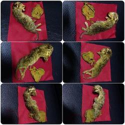 รายละเอียด - ลูกกรอกแมวลายเสือ(เบงกอล) ปล่อยให้เช่า 1ตัว มีให้เลือก6ตัว ทำพิธิปลุกเสกซ้ำโดยพระแล้วลงด้วยแผ่นทองแท้ที่หัวลูกกรอก และถ้าต้องการให้ปิดทองเพิ่มทั้งตัวสามารถแจ้งได้ สภาพสมบูรณ์ ชื่อปัจจุบันตอนพระเรียกจิตคือ รวยเพลิน,โชคลาภลอยมาเพลิน,เงินทองไหลมาเพลิน,คุณเสน่ห์หา,คุณสุดเจ๋งและคุณวิเศษณ์ คุณที่นำหน้าแปลว่าให้คุณ (สามารถเปลี่ยนชื่อให้ใหม่ได้ ) ตายตั้งแต่อยู่ในท้อง แม่แมวขับออกมาเองไม่ได้ผ่าคลอด สามารถไว้ที่หิ่งเดียวกับกุมารทองได้เลย *บนด้วยจมูกหมูจะดีมาก สามารถหั่นเหมือนให้แมวปกติได้เลย หรือเวลาให้อาหารสามารถเรียกมากินพร้อมแมวปกติได้เช่นกัน ขนาด -ลูกกรอกแมว 1x3 นิ้ว ***ว่าด้วยเรื่อง ลูกกรอกแมว คือ แมวท้องแต่เมื่อถึงเวลาประมาณ ๒ เดือนแล้ว ออกลูกมาตามธรรมชาติแล้วตายเองจะมีลักษณะตัวเล็กมีสายรกพร้อมห่อหุ้มตัวไว้(ตามหลักของสัตวแพทย์ว่าเป็นการแท้งลูก)....และแม่แมวไม่ยอมกินลูกที่ตาย ถือว่าแมวตัวนั้นให้คุณมากควรเลี้ยงดูอย่างดี หลังจากนั้นให้นำขมิ้นมาพอกทั้งตัวตากให้แห้ง แล้วห่อด้วยผ้าสามสี ไว้ใต้ทิ้งพระที่บ้านสวดมนต์บูชา..... ลูกกรอกแมวจัดได้ว่าเป็นของวิเศษที่หาได้ยาก มีอานุภาพคล้ายกับกุมารทอง คือ ให้โชคลาภมากมาย มีจิตวิญญาณ (ตามหลักของพุทธศาสนาว่าด้วยเรื่องวิญญาณศาสตร์....คือ จิตพลังหลังความตาย...มีกล่าวไว้ในพระไตรปิฏกนะครับ) บางคนกล่าวว่าบางครั้งจะออกมาเล่นซุกซนในบ้านหรือเล่นกับลูกแมวบางตัวที่ยังมีชีวิตอยู่ ควรเลี้ยงดูด้วยนม อาหาร น้ำอย่าให้ขาด จะสามารถบันดาลโชคลาภนานาประการ เงินทองไหลมาเทมาอย่างไม่ขาดสาย (ต้องขยันด้วยนะครับ) ทั้งหมดนี้เป็นความรู้ทางสาขาคติชนวิทยา ว่าด้วยเรื่องความเชื่อและพิธีกรรม ทั้งนี้ต้องขึ้นอยู่กับความเชื่อส่วนบุคคลและการมีวิจารณญาณของแต่ละคน ราคาเช่าบูชา 12000 บาท เบอร์โทรศัพท์ 0838158579 / 0959146959 - เบล การบูชาลูกกรอกแมว 1.จุดธูปขออนุญาตเจ้าที่เจ้าทางในบ้าน ใช้ธูป 12 หรือ 16 ดอก จากนั่นแนะนำตัว ข้าพเจ้าชื่อ….อยู่ บ้าน เลขที่…ขออนุญาตเจ้าที่เจ้าทาง สิ่งศักดิ์สิทธิ์ทั้งหลายแห่งนี่ที่ปกปักรักษาบ้านข้าพเจ้าอยู่ จงเปิดทางเข้า-ออก ให้ลูกกรอกแมวชื่อ…ให้เข้า-ออกบ้านข้าพเจ้าได้โดยสะดวก เพื่อเสริมทรัพย์ เสริมบารมี การค้าการขาย โชคลาภ เมตตามหานิยม ขอให้เจ้าที่จงเปิดทาง ให้ลูกกรอกแมวด้วยเถิด 2.หาภาชนะมาใส่ อาจจะวางไว้บนพานหรือหากล่อง แต่ควรหา ผ้าสีแดงมารองไว้ด้วย เลี้ยงและบูชาด้วยน้ำ นม อาหารแมว หรือปลาทู สิ่งที่แมวชอบกินกัน อาจจะทุกวัน ทุกวันพระ หรือประจำวันเก