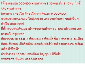 ให้เช่าคอนโด DCONDO รามคำแหง 9 30ตรม ชั้น 3 10พบ. ใกล้ APL รามคำแหง / ให้เช่าคอนโด DCONDO รามคำแหง 9 30ตรม ชั้น 3 10พบ.
