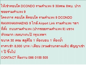 ให้เช่าคอนโด DCONDO รามคำแหง 9 30ตรม 8พบ. ปากซอยรามคำแหง 9