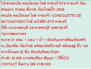 ให้เช่าคอนโด คอนโดเลต ไอซ์ ราชเทวี สวยมาก 31ตรม ชั้น12A ห้องใหม่กิ๊ก 24KB. / ให้เช่าคอนโด คอนโดเลต ไอซ์ ราชเทวี สวยมาก 31ตรม ชั