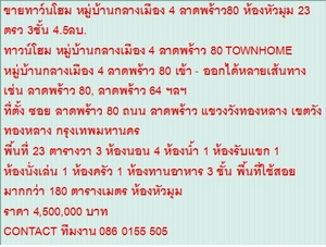 ขายทาว์นโฮม ม.กลางเมือง 4 ลาดพร้าว80 ห้องหัวมุม 23ตรว 3ชั้น 4.5ลบ.
