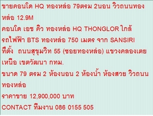 ขายคอนโด HQ ทองหล่อ 79ตรม 2นอน วิวถนนทองหล่อ 12.9M