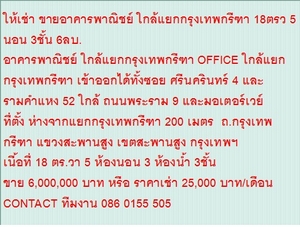 ขาย 6000000 บาท หรือ ราคาเช่า 25000 บาท/เดือน