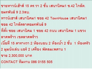 ขายTownHouse เสนานิคม1 ซอย 42 15 sq.wa ขาย2.3 ล้านบ. 2 ชั้น สวย / ขายTownHouse เสนานิคม1 ซอย 42 15 sq.wa ขาย2.3 ล้า
