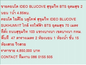 ขายคอนโด IDEO BLUCOVE สุขุมวิท BTS อุดมสุข 2นอน 1น้ำ 4.85ลบ. / ขายคอนโด IDEO BLUCOVE สุขุมวิท BTS อุดมสุข 2นอน 1น